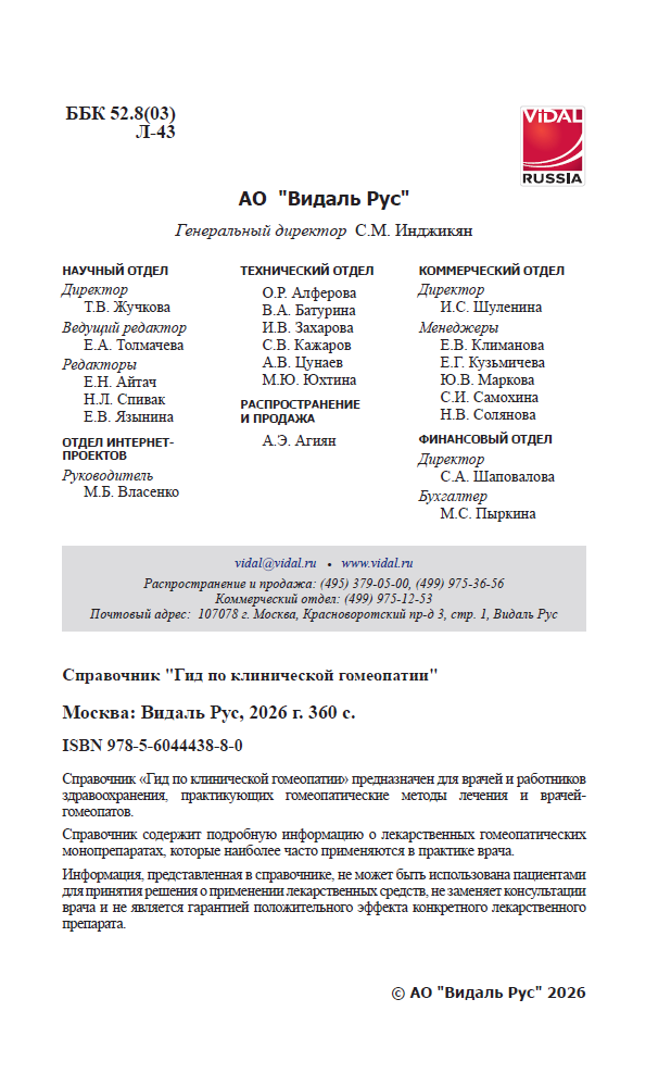 Справочник Видаль «Гид по клинической гомеопатии» 2026 (электронная версия)