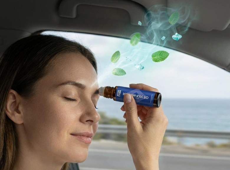 Резкий холодящий аромат перечной мяты помогает избавиться от навязчивых мыслей и отвлечься. Это одно из первых средств при укачивании в дороге и вызванной этим тревожности или паники. Вдыхание масла дополнительно облегчает усталость от многочасового пути.